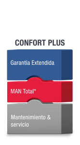 ComfortPlus también incluye una garantía ampliada para la cadena cinemática, además de nuestra gestión de mantenimiento proactiva MAN Total y las ventajas del contrato de servicio Comfort. Si lo desea, también puede contratar una garantía ampliada para todo el vehículo.
